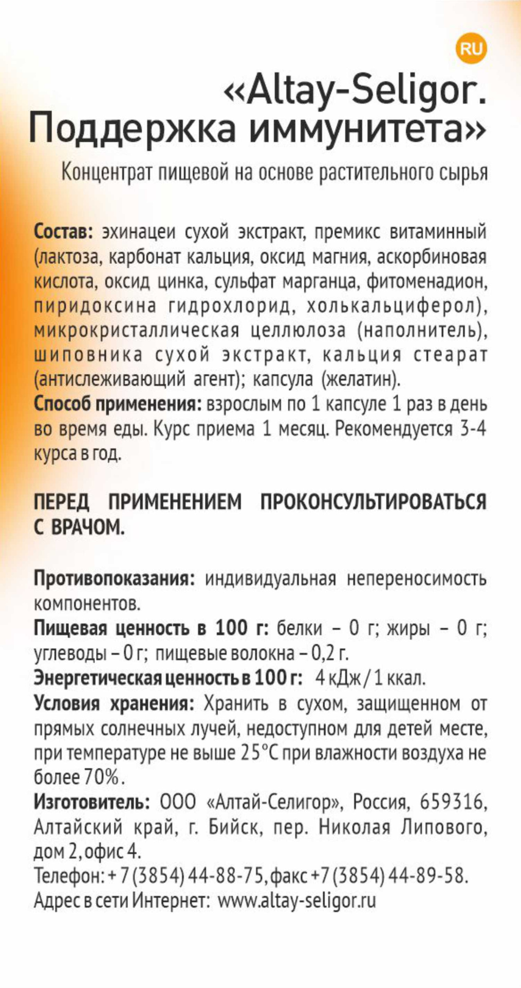Специалисты компании Altay-Seligor выбрали наиболее подходящие для здоровья иммунной системы человека растительные компоненты и объединили их в препарате Поддержка иммунитета.