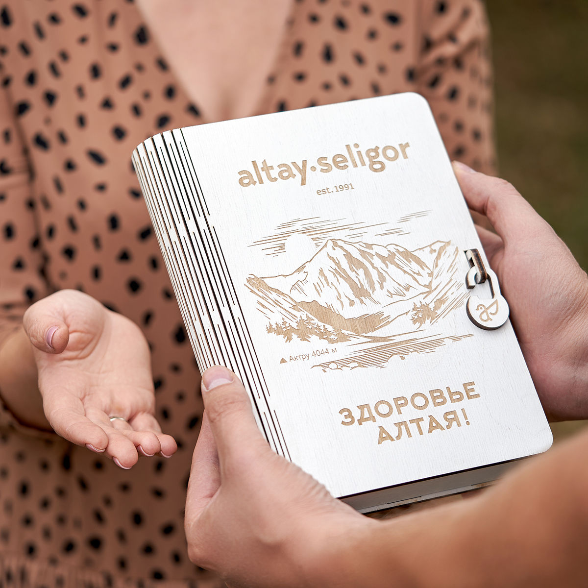 Особенность подарочного набора в его уникальности, практичности и функциональном наполнении. Изящный подарок с красивой гравировкой повторяет точную копию известной горы на Алтае, гору Актру (высота 4 044 м).