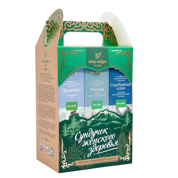Что подарить маме, подруге или коллеге по работе? Хорошим подарком с заботой о здоровье станет подарочный «Сундучок Женского здоровья» от Алтай-Селигор. В состав подарочного набора входят 3 бальзама. Каждый продукт в сундучке подобран с учётом потребностей женского организма: